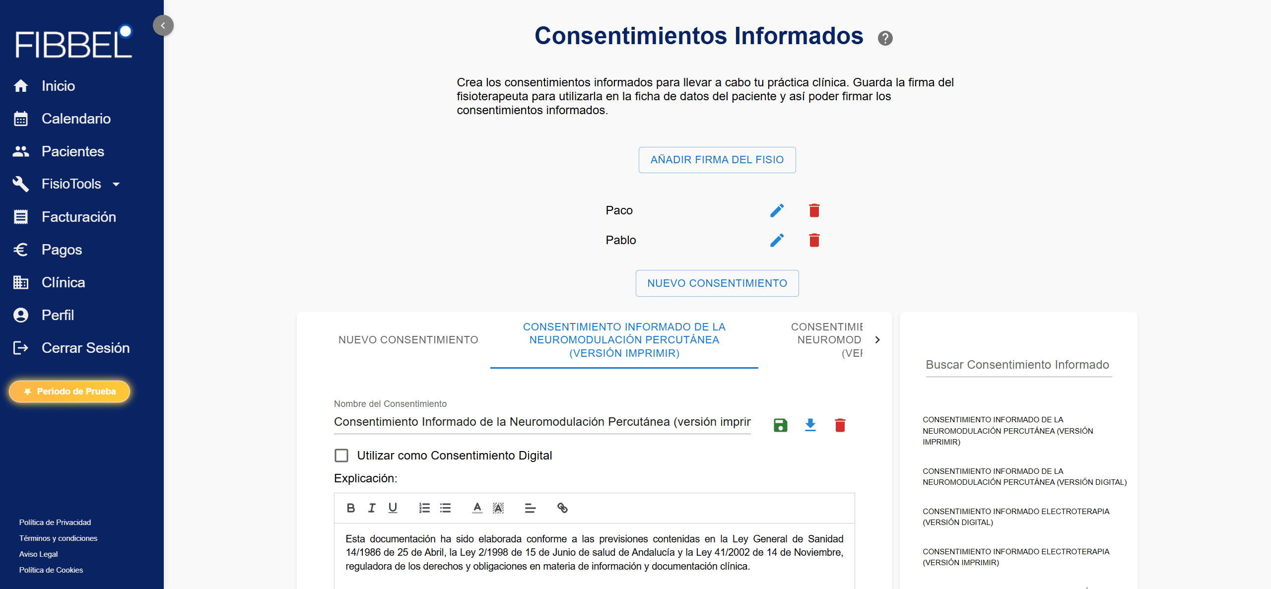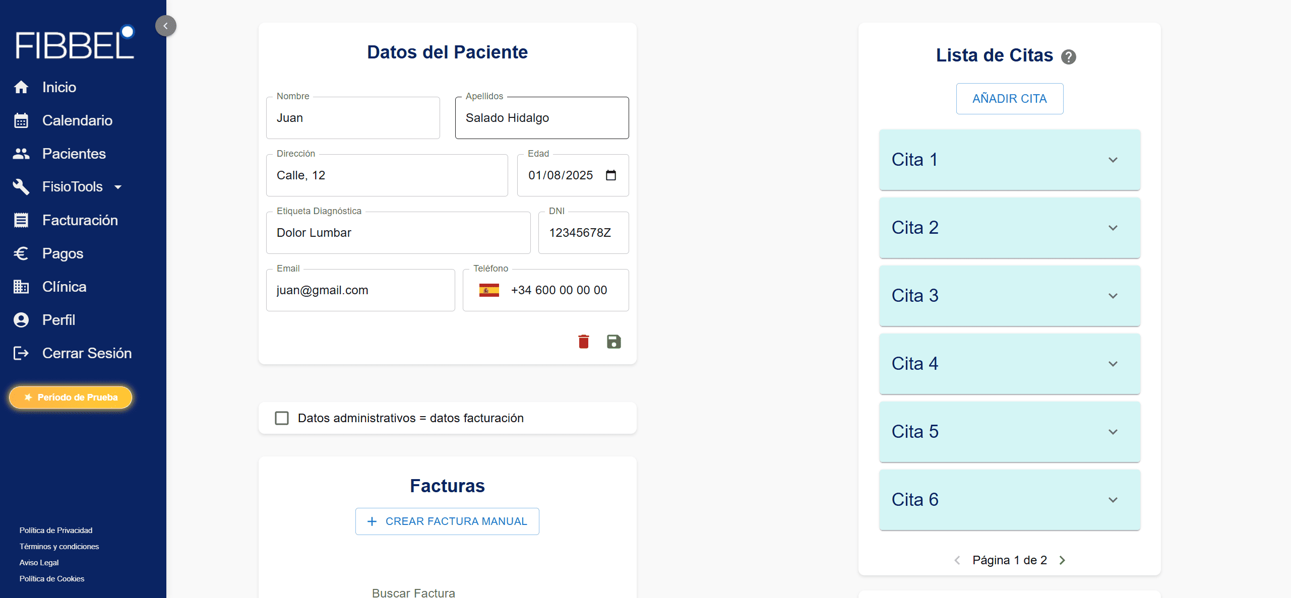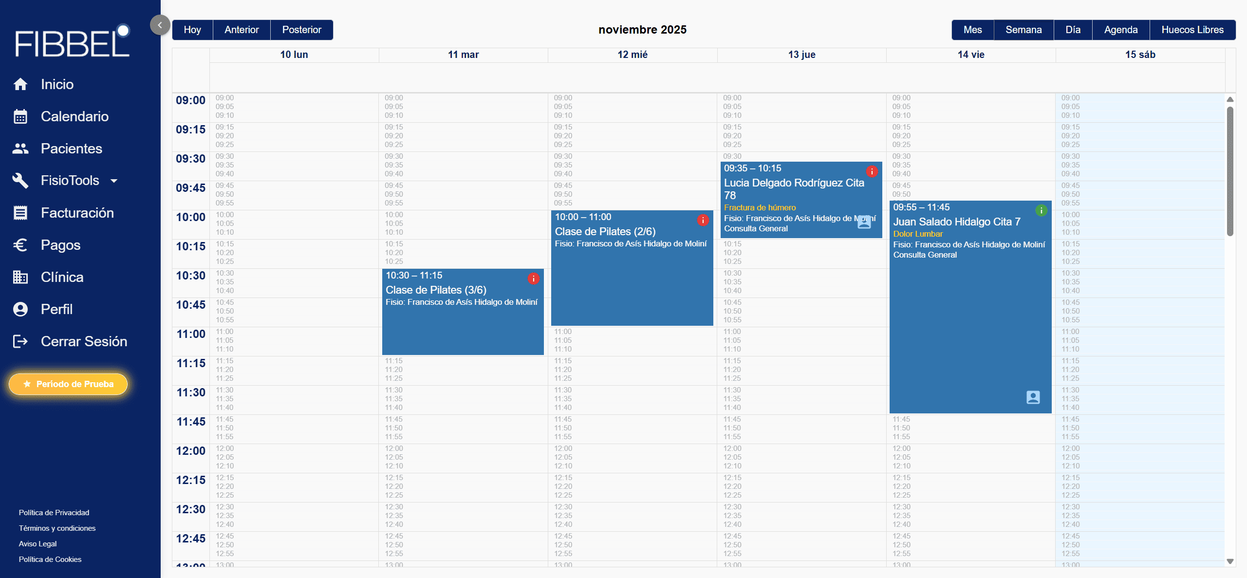 Si llevas la clínica tú solo (sin administrativo ni otro fisio), Fibbel te quita la carga de agenda, te ordena la documentación y te ayuda a protocolizar las intervenciones con la última evidencia.